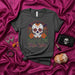 Crafted for those who embrace both the dark and the light, this shirt channels the beauty of Día de Muertos with a vibrant, floral sugar skull—intricately designed and adorned with details that are as bold as they are beautiful. Each element on this shirt tells a story, pulling from centuries of culture while adding a contemporary edge. This isn’t just a shirt; it’s an homage to family, to heritage, to your spirit.