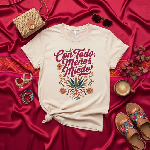 🌺 Wear Your Courage Proudly 🌺 Some shirts just blend in—but this one? It speaks for you before you say a word. “Con Todo Menos Miedo” isn’t just a ...