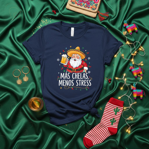 🍻 Más Chelas, Menos Stress 🎅 Some shirts make you laugh—and this one? It makes you celebrate. Picture Santa rocking a sombrero, cerveza in hand, ...